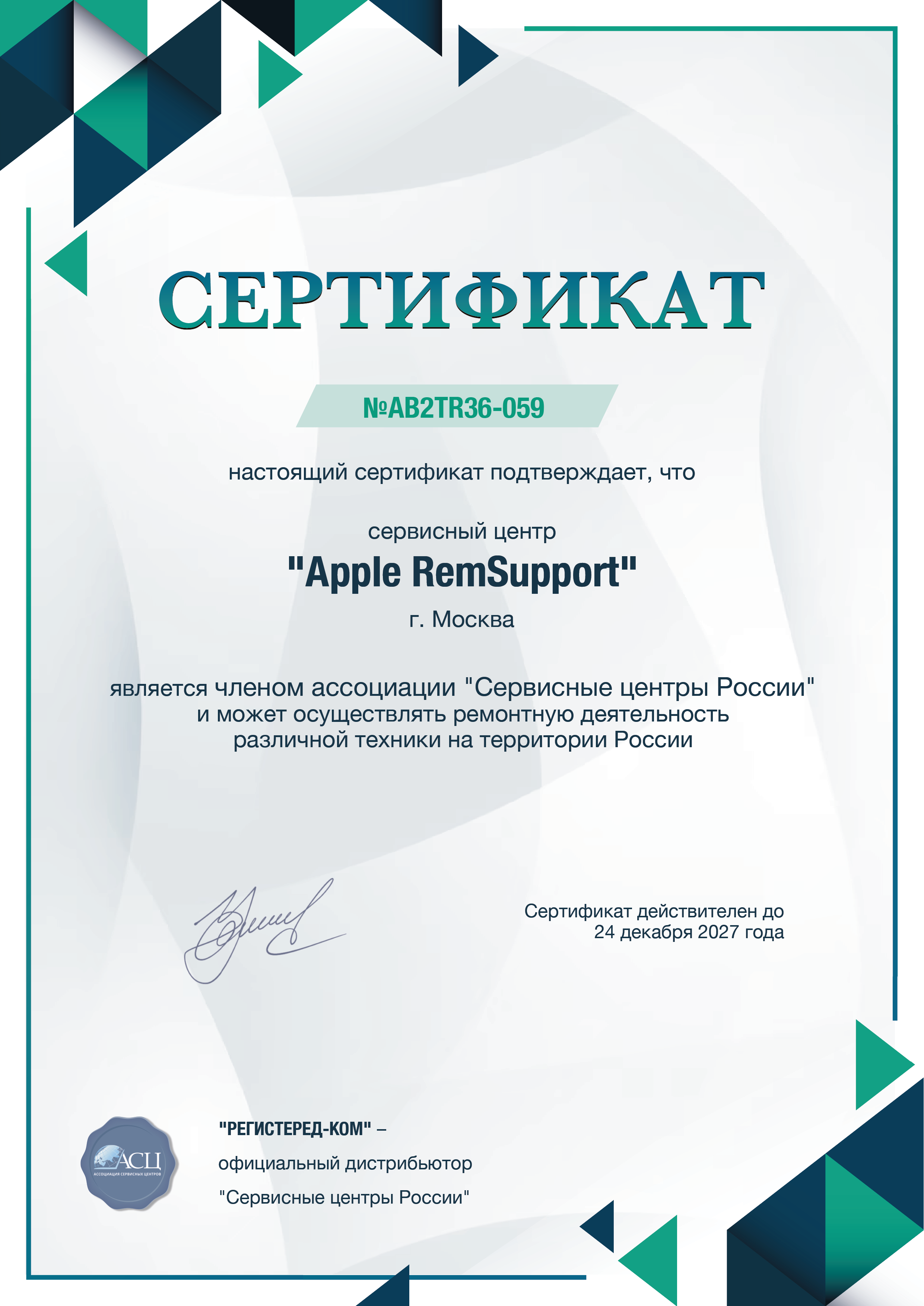 Сервисный центр Apple RemSupport в Москве специализируется на обслуживании macbook Apple, где особенно важны точность и профессиональный подход. Наличие профильных сертификатов подтверждает, что мы используем проверенные методы диагностики, современное оборудование и соблюдаем технические стандарты при работе с macbook. Это позволяет корректно выявлять неисправности и выполнять ремонт без риска для чувствительных компонентов устройства.